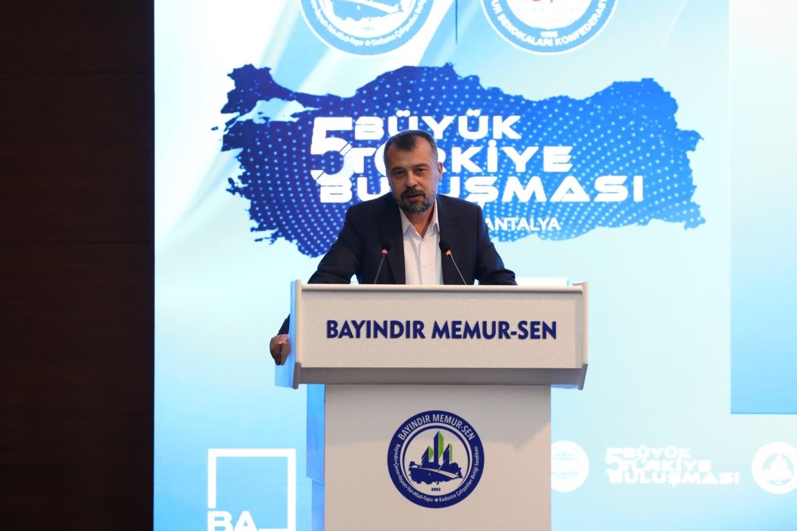 Bayındır Memur-Sen 5. Türkiye Buluşması büyük coşku ve heyecanla gerçekleştirildi. Programın açılış konuşmasını gerçekteştiren Genel Başkan Tufanoğlu, “Mücadelemizi yeni, kazanımlarla taçlandırmaya, sorunları çözmeye, beklentileri karşılamaya devam edeceğiz” dedi.