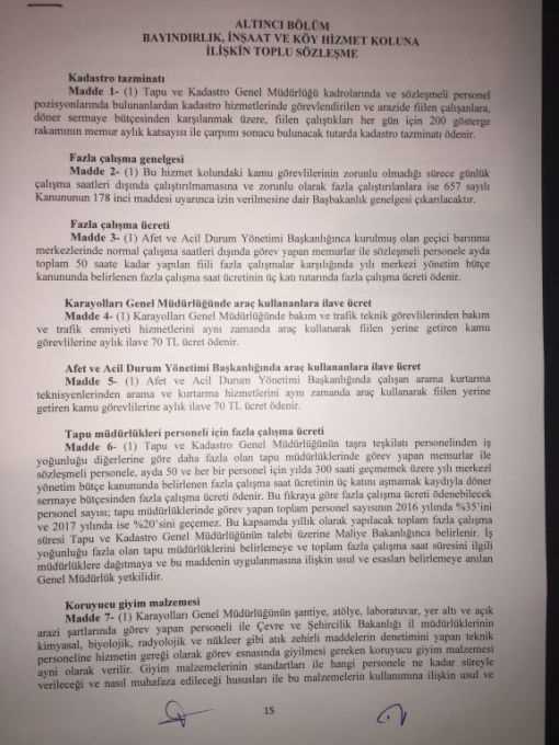 Bayındır, İnşaat, Yol, Yapı, Tapu ve Kadastro Birliği Çalışanları Hizmet Kolu’nda Toplu Sözleşme Masası’nda elde ettiği kazanımlar şu şekilde: