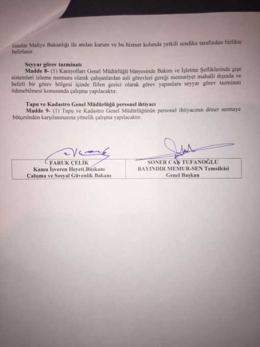 “2016 için 6+5, 2017 için 3+4 zam oranları, enflasyonun kamu görevlilerini değil, kamu görevlilerinin enflasyonu rahat bir şekilde ezmesini sağlamıştır” diyen Tufanoğlu, “3. Dönem Toplu Sözleşmesi, kamu görevlilerine, ailelerine ve milletimize hayırlı ve bereketli olsun. Bu toplu sözleşmenin önemli bir başka yönü, ilk gün 3 kazanımla başlaması ve son gün “mali ve sosyal kazanım paketi” olarak sonuçlanmasıdır” şeklinde konuştu.