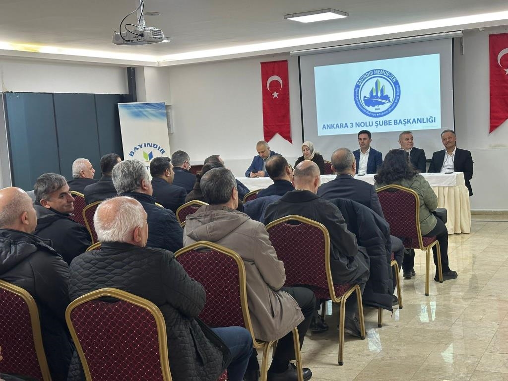 Genel Başkan Yardımcılarımız Taner Düzgören, Levent Tosun ve Gökhan Şimşek, Bayındır Otel Toplantı Salonu'nda düzenlenen Ankara 3 Nolu Şubemizin 4. Olağan Genel Kurul programına katıldı.
