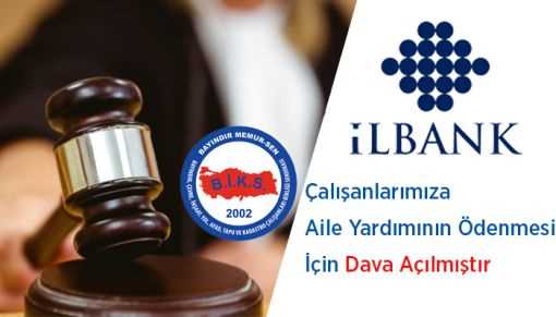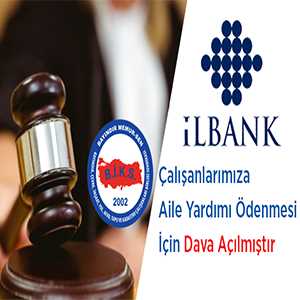 İlbank Personeline ödenmesi gereken aile yardımı ödeneğinin hesaplanmasında, Devlet Memurları Kanunu’nun 202. Maddesine göre hesaplanan aile yardımı ödeneği kadarlık kısmın Yüksek Planlama Kurulunca banka için tespit edilecek üst sınır kapsamında hesaplanacak aylık ortalamaya dahil edilmemesi gerektiği hususunun tespiti ve bu doğrultuda İlbank personeline aile yardımı ödenmesi için sendikamız tarafından dava açılmıştır.