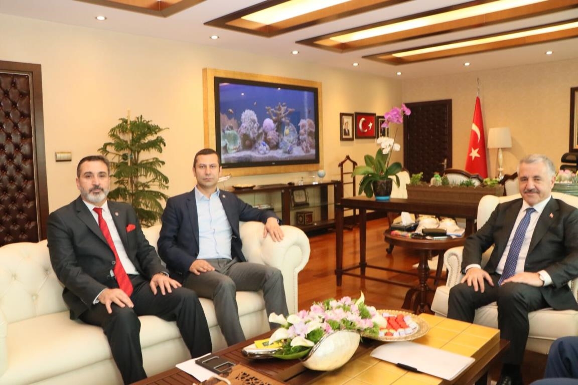 Memur-Sen Genel Başkanı Ali Yalçın ve beraberindeki heyet Bayındır Memur-Sen Genel Başkanı Soner Can Tufanoğlu, Birlik Haber-Sen Genel Başkanı Ömer Budak ve Ulaştırma Memur-Sen Genel Başkanı Can Cankesen Ulaştırma, Denizcilik ve Haberleşme Bakanı Ahmet Arslan'ı ziyaret etti.