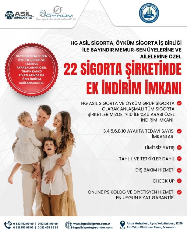 Bu anlaşma kapsamında üyelerimizin isteğine bağlı olarak, mümkün olan en düşük fiyatla "Tamamlayıcı Sağlık Sigortası (TSS)" ile en güçlü ve en yüksek teminatlarla anlaşmalı özel hastanelerin hizmetlerinden en uygun fiyatlarla yararlanabileceklerdir. Üyelerimizin eş ve çocukları da isterlerse bu indirimden en düşük fiyatlarla faydalanabileceklerdir. Bu anlaşma ile üyelerimizin yıllık bazda birçok tedaviden limitsiz ve indirimli bir şekilde yararlanabilmesi sağlandı. İmzalanan protokol kapsamında üyelerimizin yıllık bazda yararlanabileceği sağlık hizmetleri şu şekildedir;