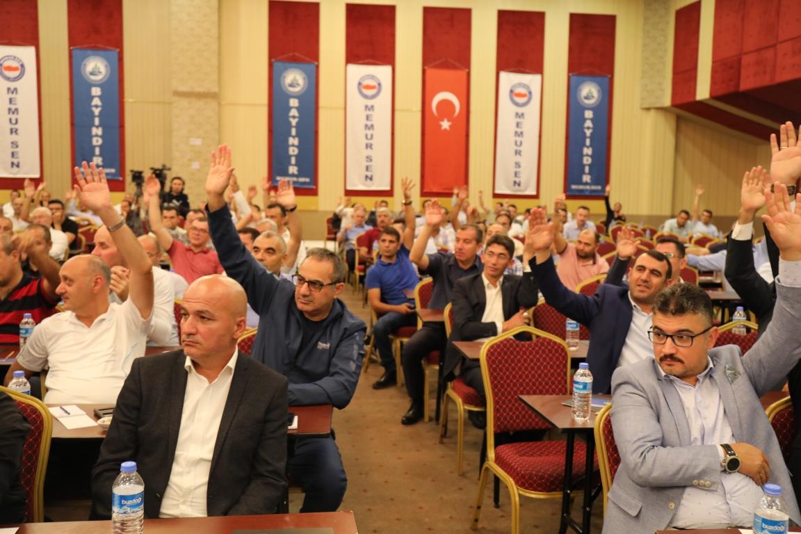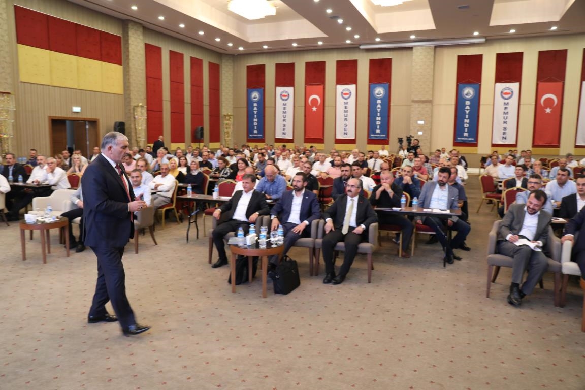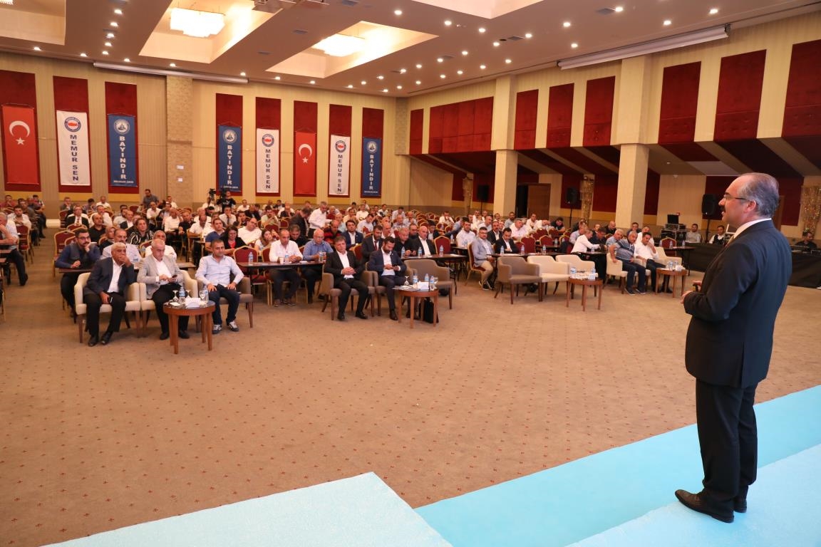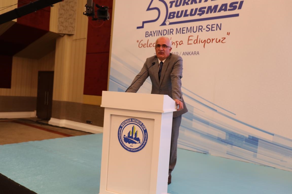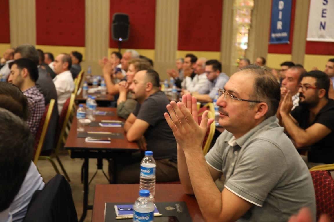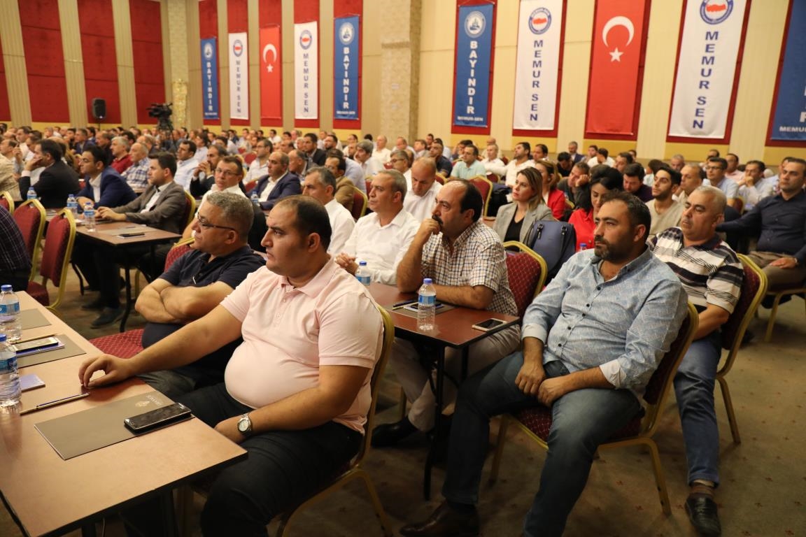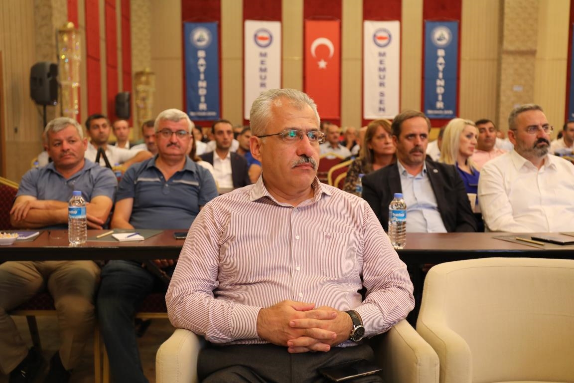 Konuşmalarını sürdüren Yalçın, ‘’5. Dönem Toplu Sözleşme sürecinde iş bırakma eylemi yaptık. Ardından boş cüzdanlarımızı Bakanlığın önüne koyduk. Bizim derdimiz bağcıyı kovmak değil, üzüm yemektir. Refahtan pay almaktır. Kamu İşveren Heyeti müzakerede uzlaştı, tutanakta şaştı. Uzlaşmadan ve paylaşımdan kaçınan bir işveren tavrıyla karşılaştık. Kamu işvereni kazandıracak teklif sunmadı, biz de kazandırmayan teklife imza atmadık. Çünkü biz omuzlarımızda 1 milyonu aşkın üyenin haysiyetini, 5 milyon 200 bin kişinin mesuliyetini taşıyoruz. Mesuliyeti yerine getirdik, haysiyeti çiğnetmedik” dedi.