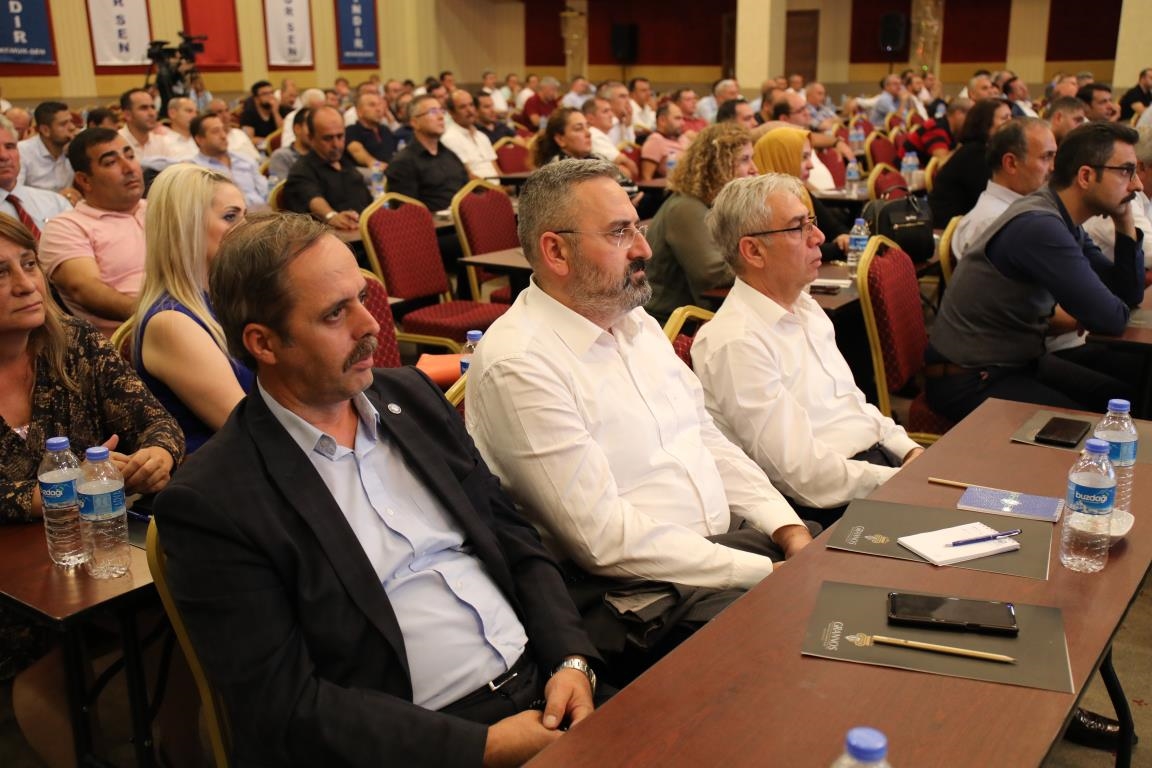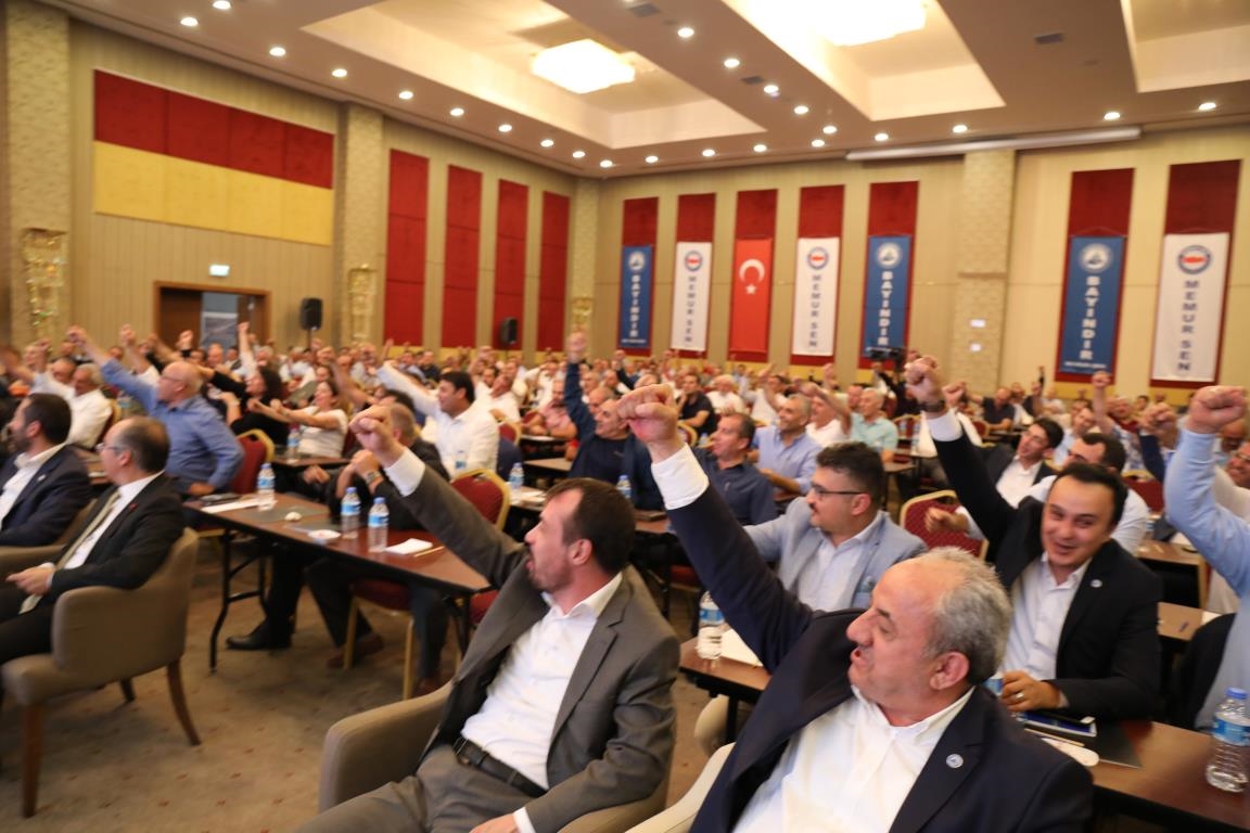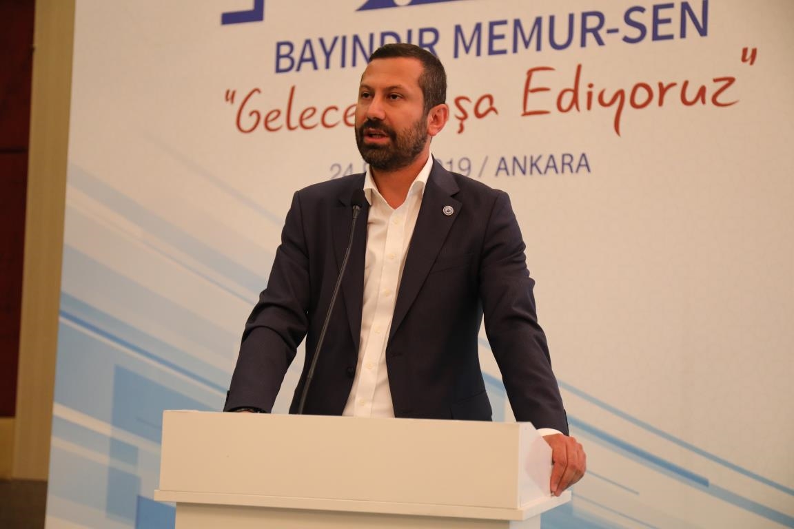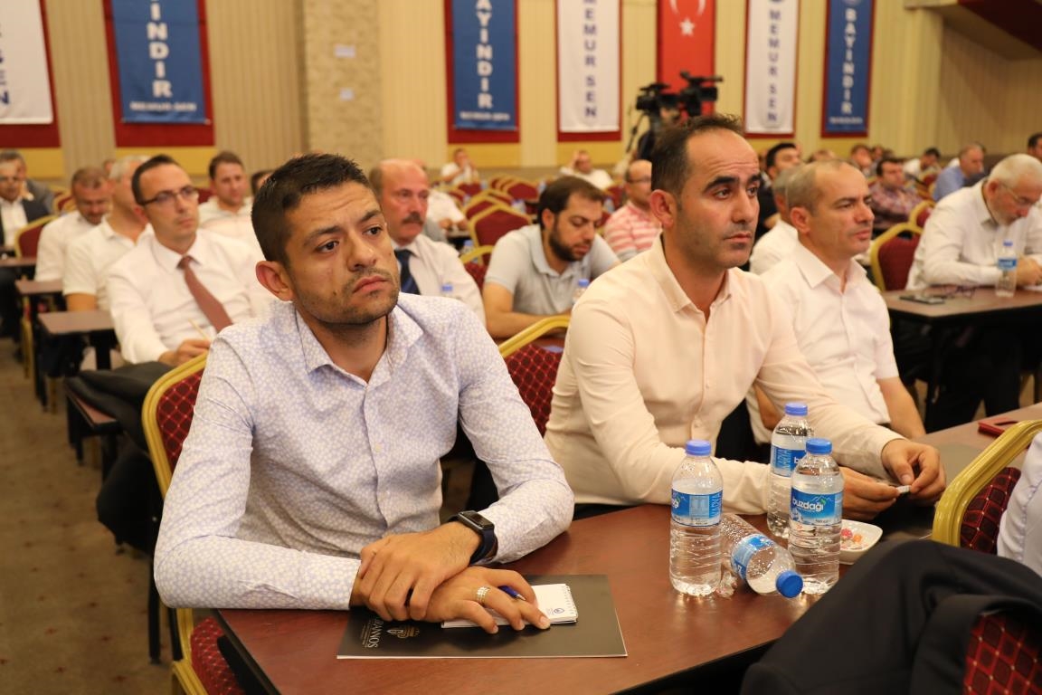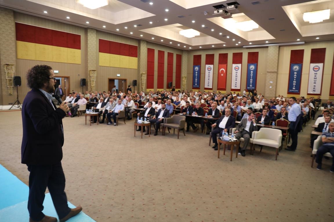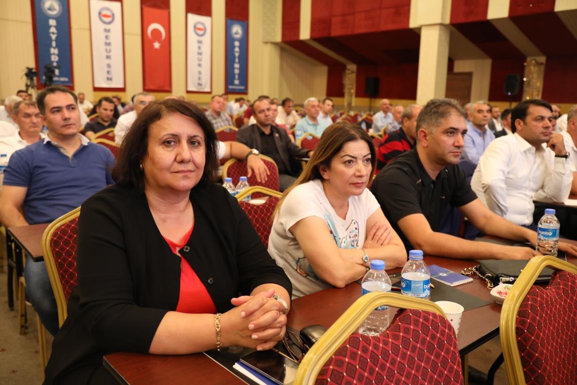 Konuşmalarını sürdüren Yalçın, ‘’5. Dönem Toplu Sözleşme sürecinde iş bırakma eylemi yaptık. Ardından boş cüzdanlarımızı Bakanlığın önüne koyduk. Bizim derdimiz bağcıyı kovmak değil, üzüm yemektir. Refahtan pay almaktır. Kamu İşveren Heyeti müzakerede uzlaştı, tutanakta şaştı. Uzlaşmadan ve paylaşımdan kaçınan bir işveren tavrıyla karşılaştık. Kamu işvereni kazandıracak teklif sunmadı, biz de kazandırmayan teklife imza atmadık. Çünkü biz omuzlarımızda 1 milyonu aşkın üyenin haysiyetini, 5 milyon 200 bin kişinin mesuliyetini taşıyoruz. Mesuliyeti yerine getirdik, haysiyeti çiğnetmedik” dedi.