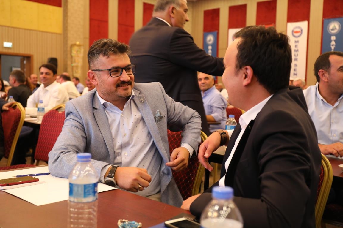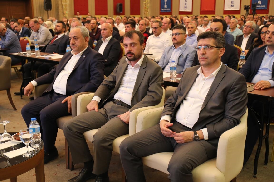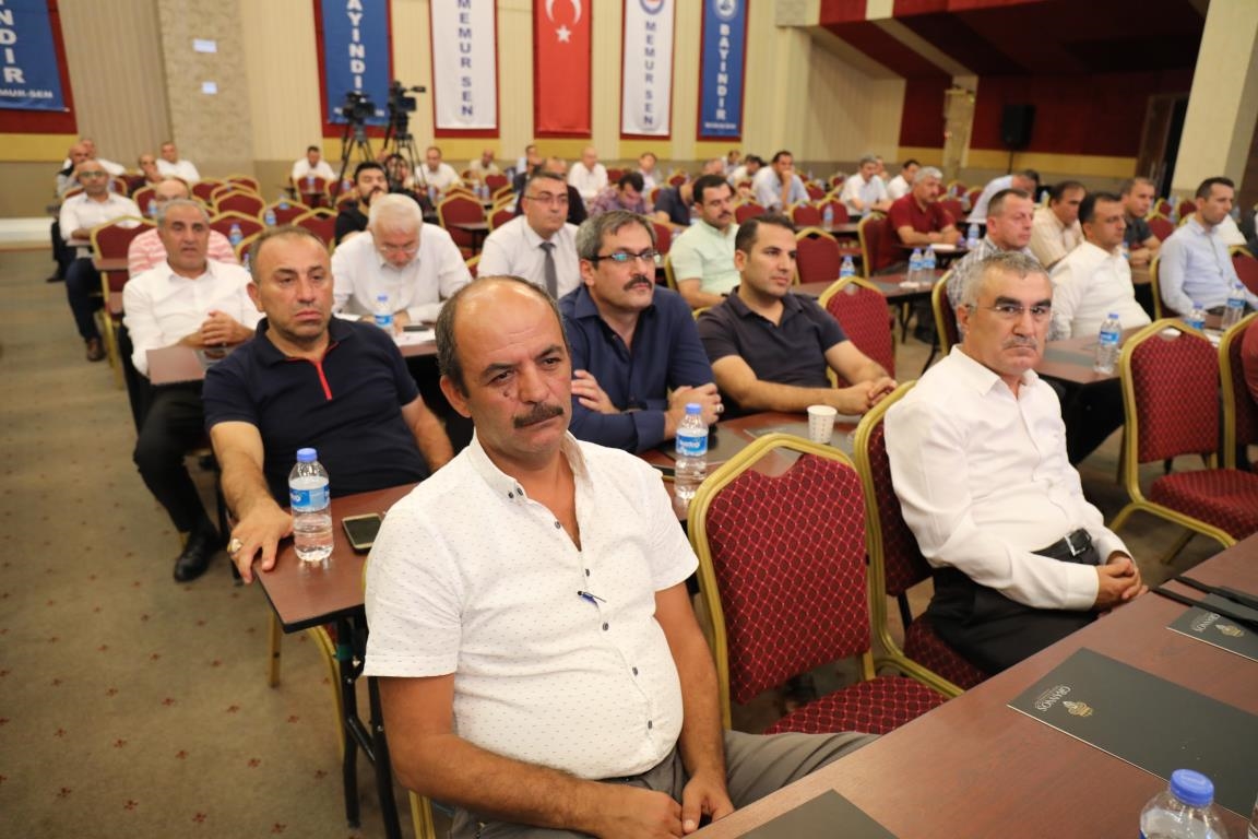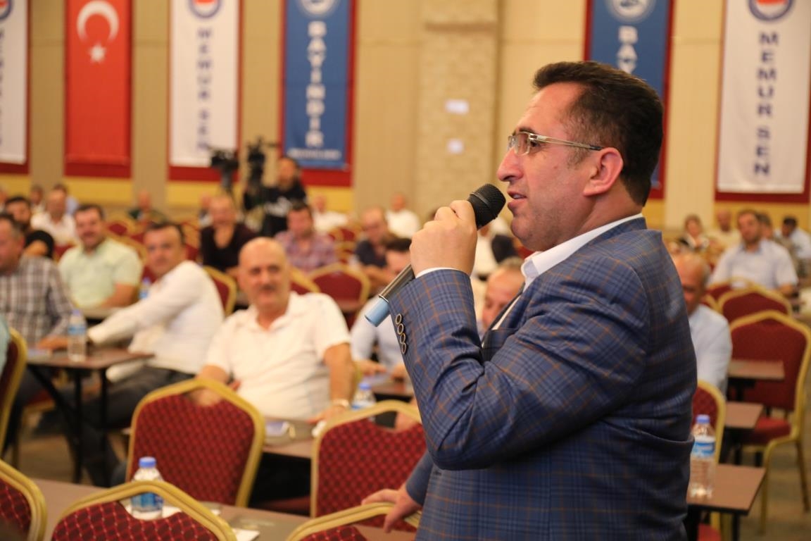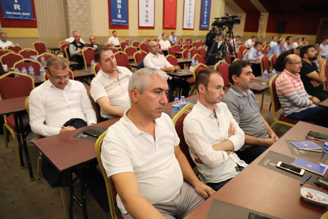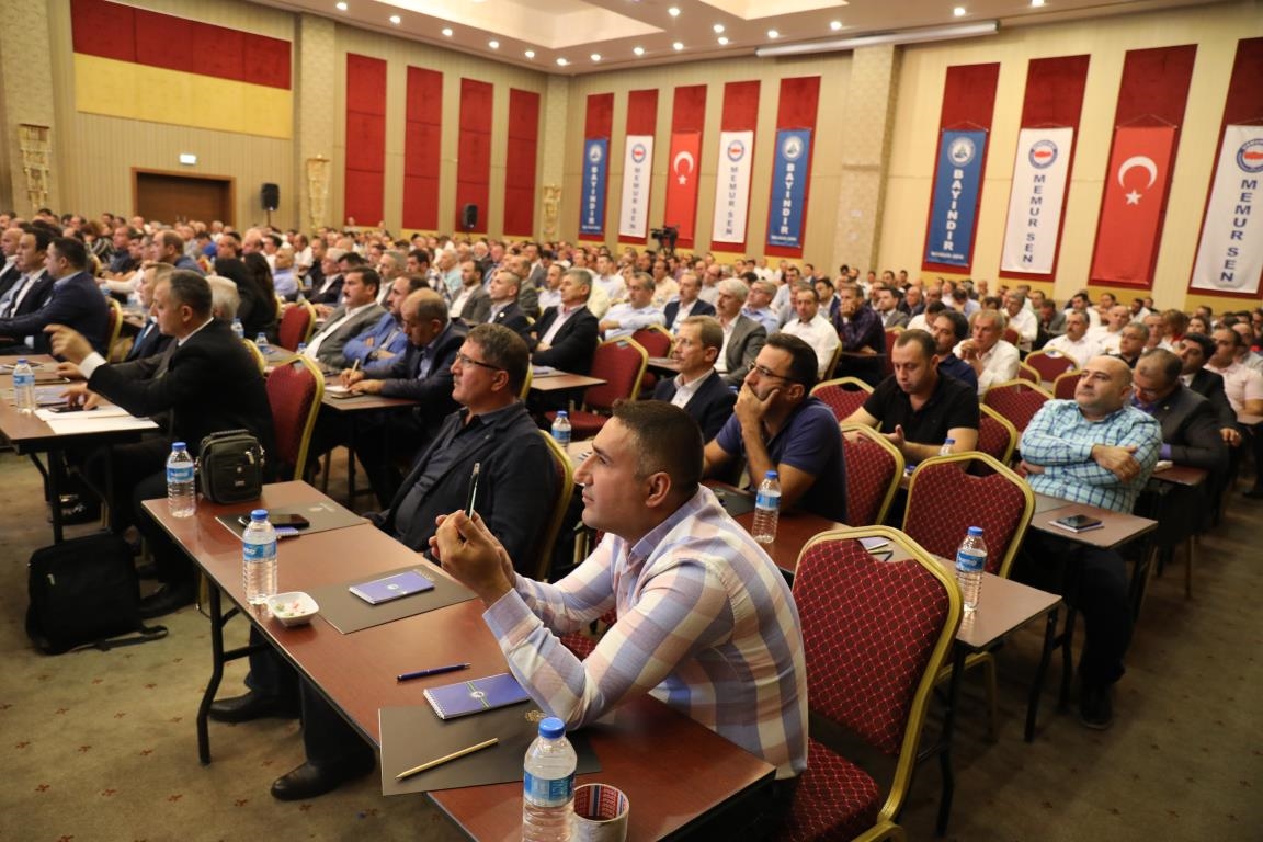 Konuşmalarını sürdüren Yalçın, ‘’5. Dönem Toplu Sözleşme sürecinde iş bırakma eylemi yaptık. Ardından boş cüzdanlarımızı Bakanlığın önüne koyduk. Bizim derdimiz bağcıyı kovmak değil, üzüm yemektir. Refahtan pay almaktır. Kamu İşveren Heyeti müzakerede uzlaştı, tutanakta şaştı. Uzlaşmadan ve paylaşımdan kaçınan bir işveren tavrıyla karşılaştık. Kamu işvereni kazandıracak teklif sunmadı, biz de kazandırmayan teklife imza atmadık. Çünkü biz omuzlarımızda 1 milyonu aşkın üyenin haysiyetini, 5 milyon 200 bin kişinin mesuliyetini taşıyoruz. Mesuliyeti yerine getirdik, haysiyeti çiğnetmedik” dedi.