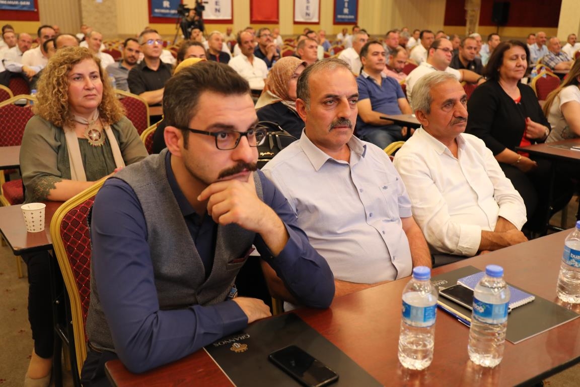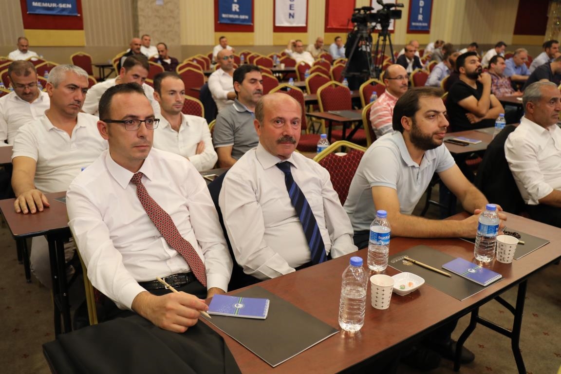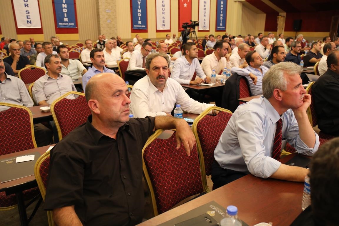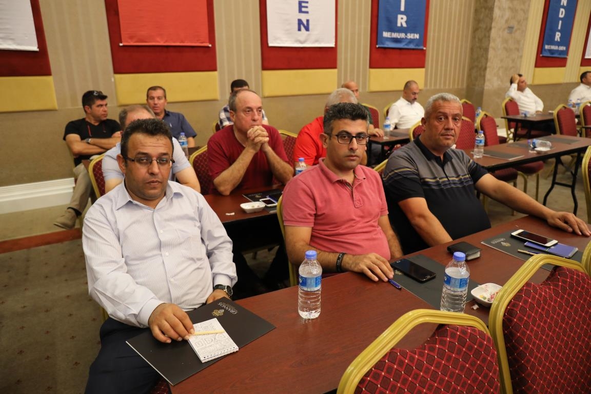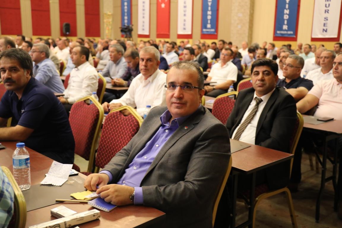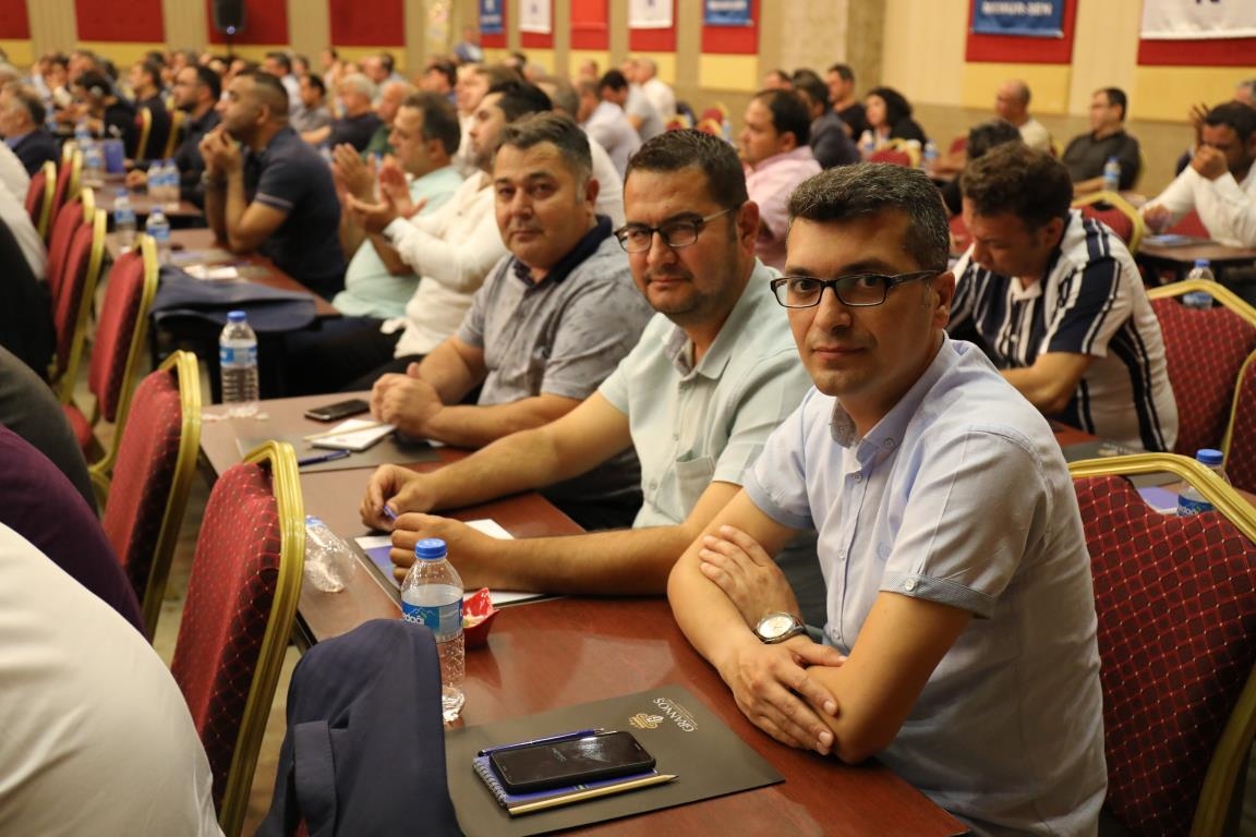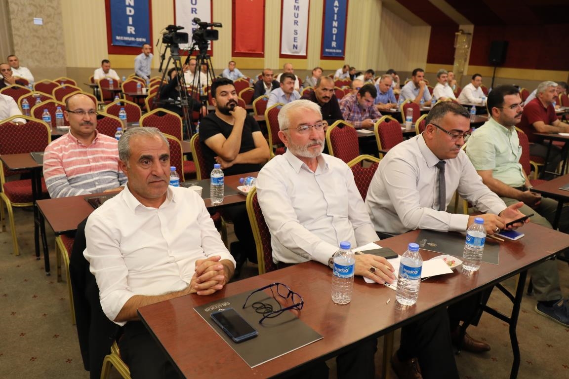 Konuşmalarını sürdüren Yalçın, ‘’5. Dönem Toplu Sözleşme sürecinde iş bırakma eylemi yaptık. Ardından boş cüzdanlarımızı Bakanlığın önüne koyduk. Bizim derdimiz bağcıyı kovmak değil, üzüm yemektir. Refahtan pay almaktır. Kamu İşveren Heyeti müzakerede uzlaştı, tutanakta şaştı. Uzlaşmadan ve paylaşımdan kaçınan bir işveren tavrıyla karşılaştık. Kamu işvereni kazandıracak teklif sunmadı, biz de kazandırmayan teklife imza atmadık. Çünkü biz omuzlarımızda 1 milyonu aşkın üyenin haysiyetini, 5 milyon 200 bin kişinin mesuliyetini taşıyoruz. Mesuliyeti yerine getirdik, haysiyeti çiğnetmedik” dedi.