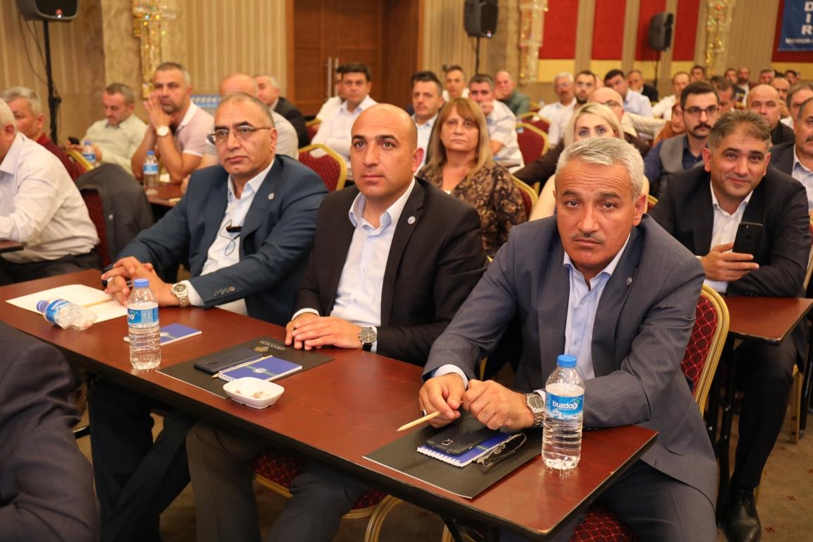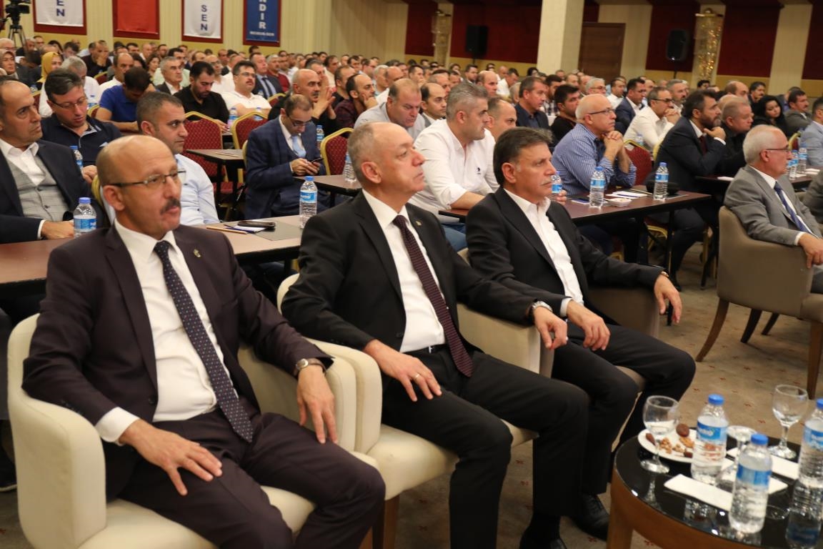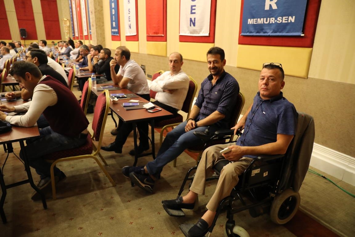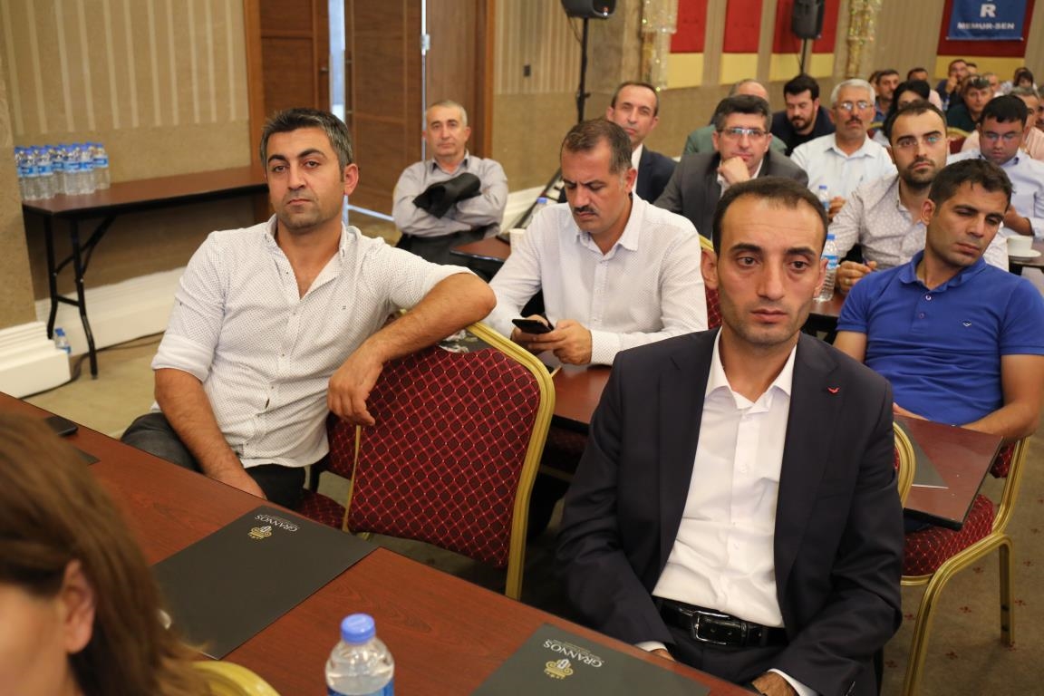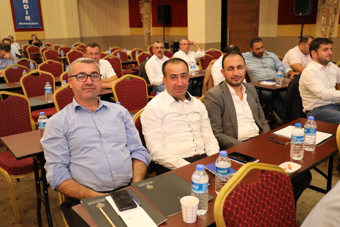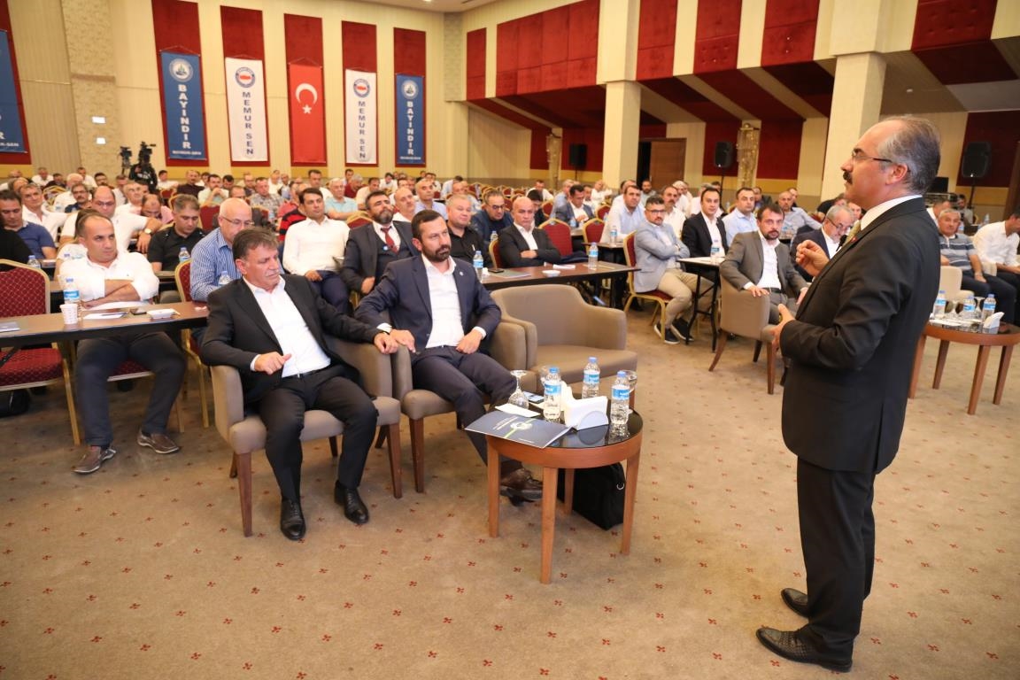 Konuşmalarını sürdüren Yalçın, ‘’5. Dönem Toplu Sözleşme sürecinde iş bırakma eylemi yaptık. Ardından boş cüzdanlarımızı Bakanlığın önüne koyduk. Bizim derdimiz bağcıyı kovmak değil, üzüm yemektir. Refahtan pay almaktır. Kamu İşveren Heyeti müzakerede uzlaştı, tutanakta şaştı. Uzlaşmadan ve paylaşımdan kaçınan bir işveren tavrıyla karşılaştık. Kamu işvereni kazandıracak teklif sunmadı, biz de kazandırmayan teklife imza atmadık. Çünkü biz omuzlarımızda 1 milyonu aşkın üyenin haysiyetini, 5 milyon 200 bin kişinin mesuliyetini taşıyoruz. Mesuliyeti yerine getirdik, haysiyeti çiğnetmedik” dedi.