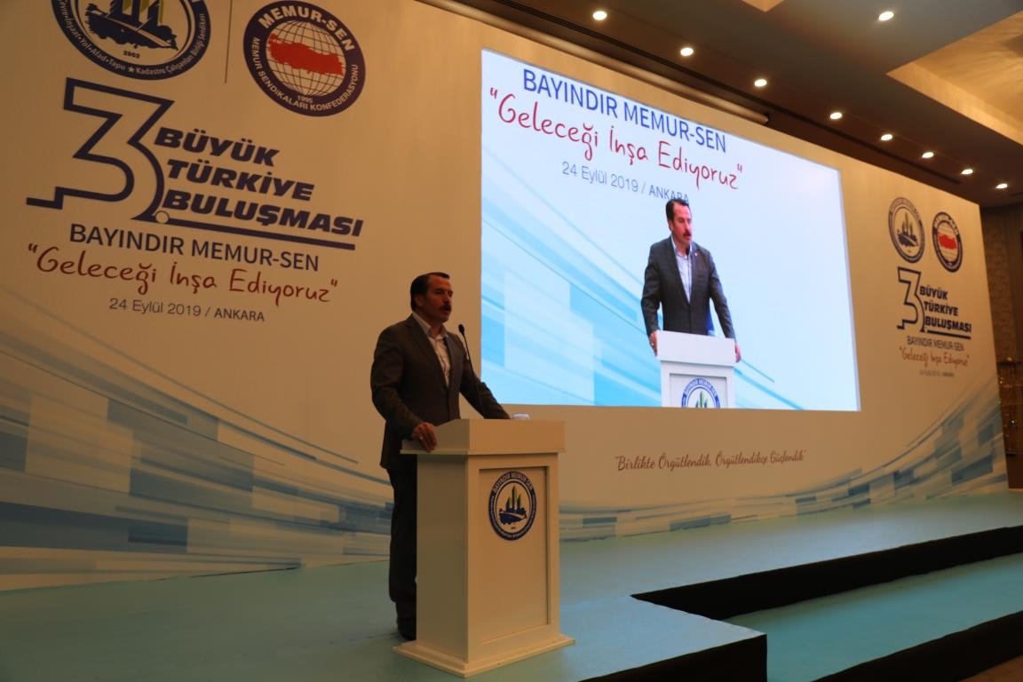 Yetkili sendika Bayındır Memur-Sen, 3. Büyük Türkiye Buluşmasını Ankara’da gerçekleştirdi. 5. Dönem Toplu Sözleşme sürecine ilişkin konuların ele alındığı programda Memur-Sen Genel Başkanı Ali Yalçın, Tapu ve Kadastro Genel Müdürü Mehmet Zeki Adlı ve Bayındır Memur-Sen Genel Başkanı Soner Can Tufanoğlu konuşmalarını gerçekleştirdi.