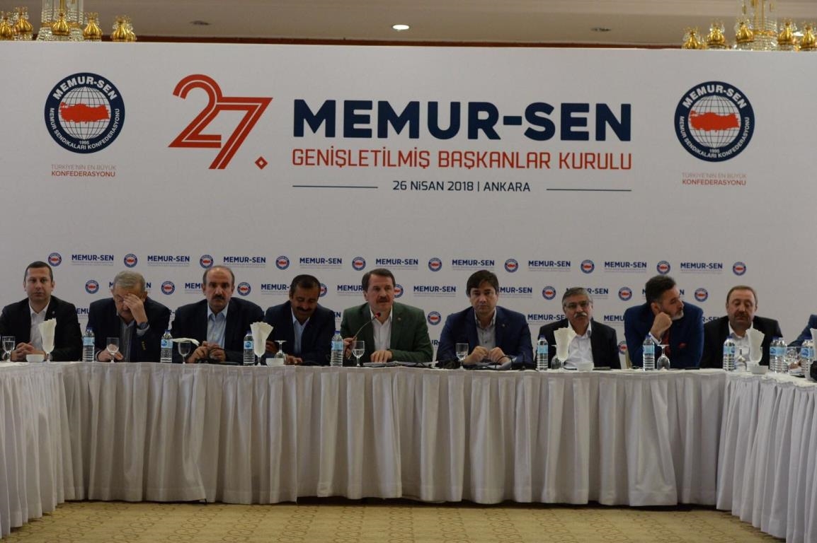 Memur-Sen 27’inci Genişletilmiş Başkanlar Kurulu Toplantısı, Memur-Sen Genel Başkanı Ali Yalçın ve Memur-Sen yönetim kurulu üyeleri, Memur-Sen’e bağlı sendikaların genel başkanları, genel başkan yardımcıları ve komisyon başkanlarının katılımı ile Ankara’da gerçekleştirildi. Toplantının gündem maddeleri Uluslararası Çalışma Örgütü (ILO) konferansı, 1 Mayıs Emek ve Dayanışma Bayramı, 4-5 Mayıs günlerinde gerçekleştirilecek olan, "İnsan, Emek ve Küresel Rekabet Uluslararası Kongresi" ve 24 Haziran erken seçim kararı oldu.